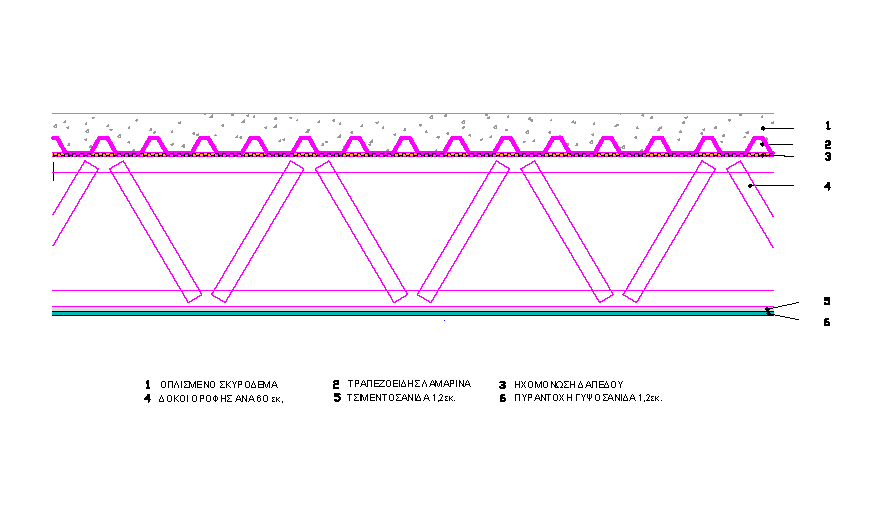 - Τσιμεντοσανίδα 1,2 εκ προστασίας του σκελετού από φωτιά
