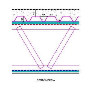 Επί του μεταλλικού σκελετού, θα τοποθετηθεί αυλακωτή λαμαρίνα ως υπόστρωμα στο μπετόν, πάχους 0,3 χλστ, φέρουσας ικανότητας 450 κιλών/μ2.