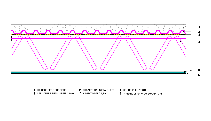 - Ciment board 1,2 cm offering fire protection of the metal structure