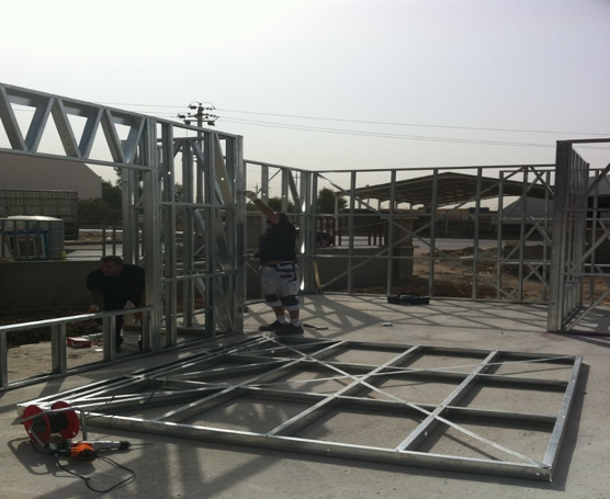 The different elements thus created, are assembled in the factory to form parts of bearing walls and ceiling, in dimensions able to fit into a container, which will be shipped to the construction site.